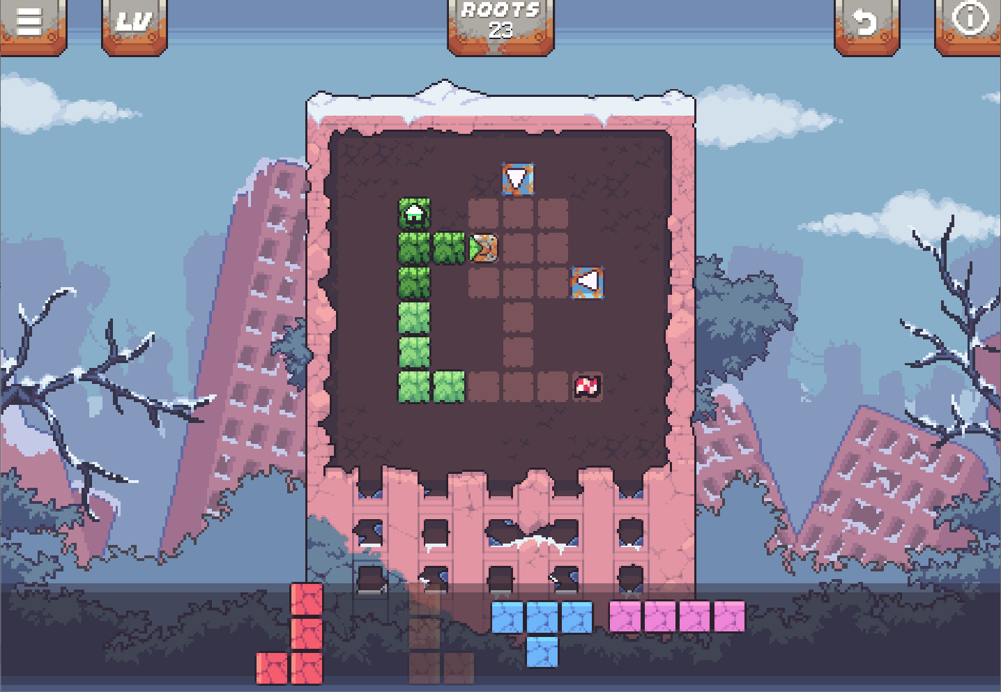 ROOTS! is a mildly addicting puzzle game where you assist nature in reclaiming the land after the end of civilization. Play through 50 head scratching levels and experience how the environment changes with the seasons.